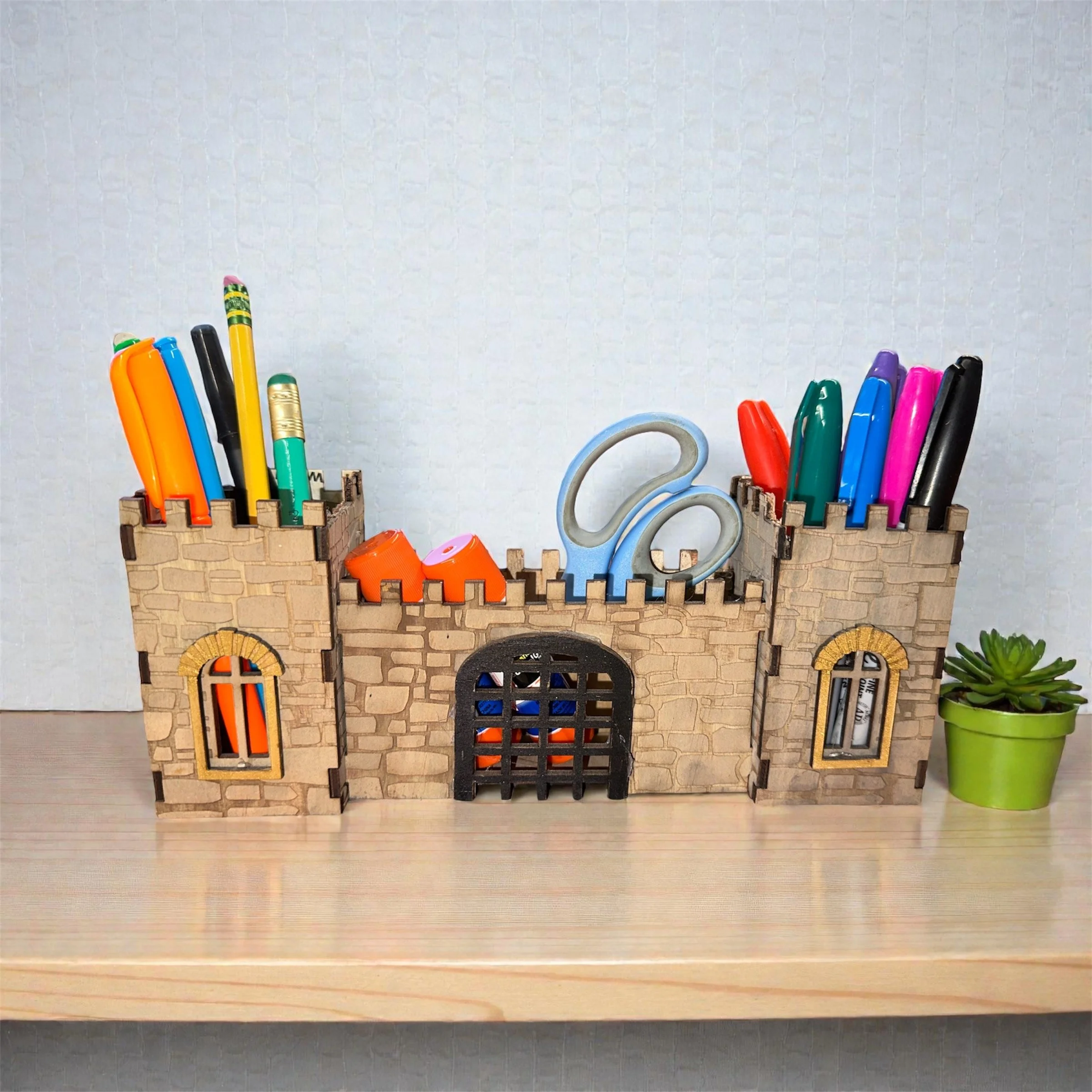 Laser -cut Castle and Pencil Holder